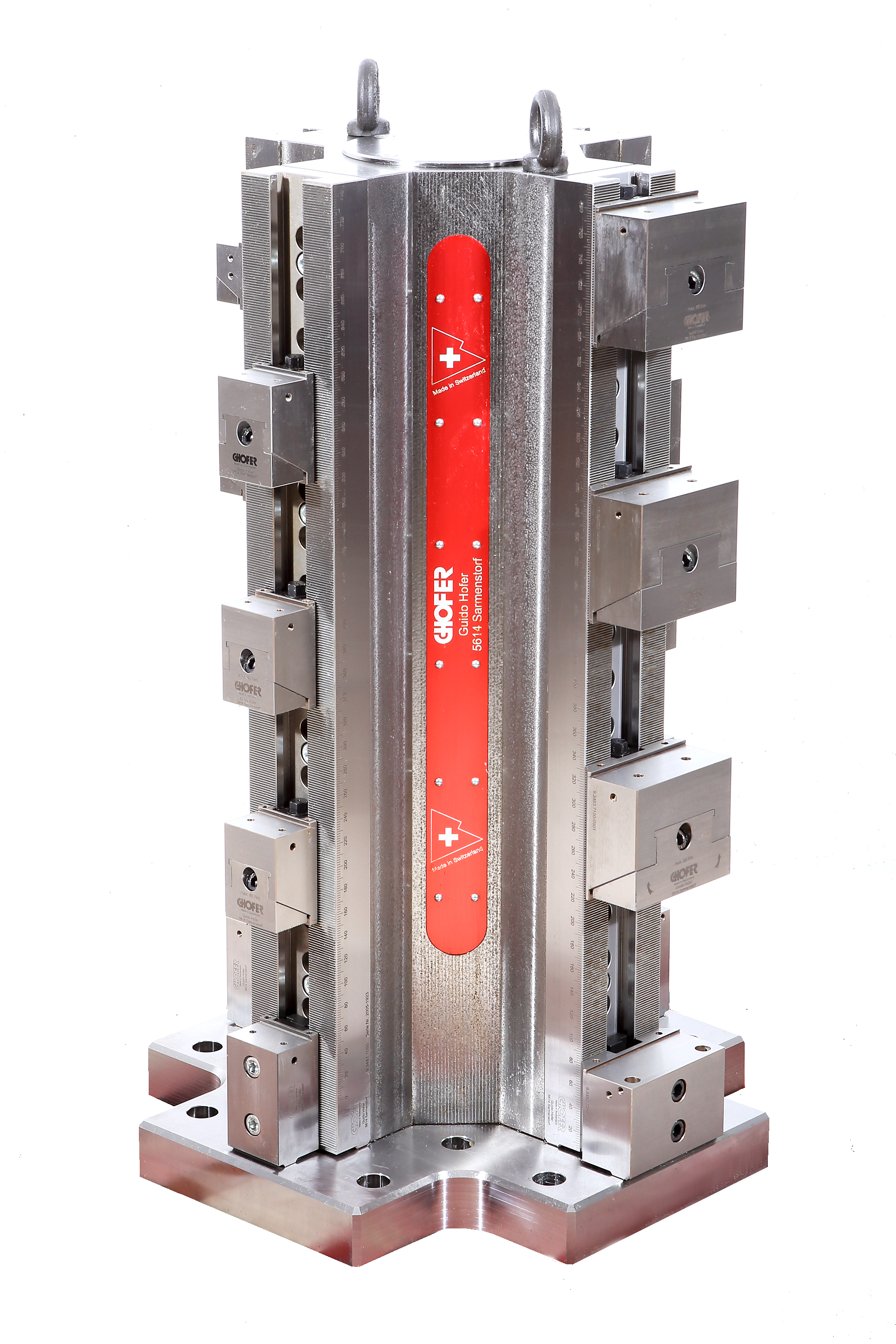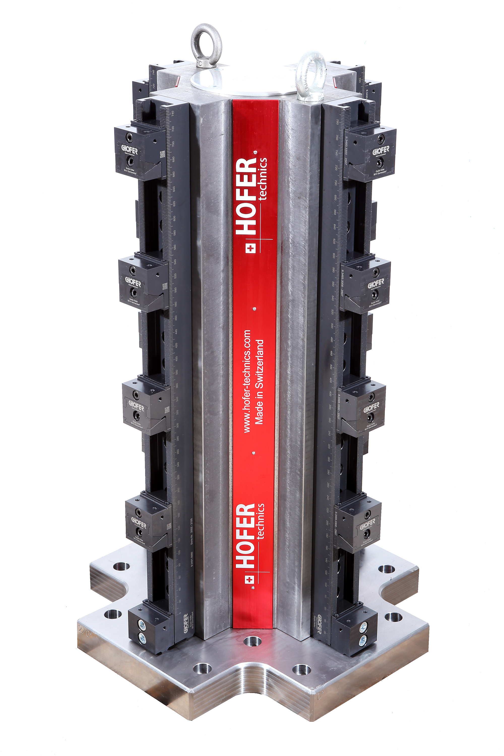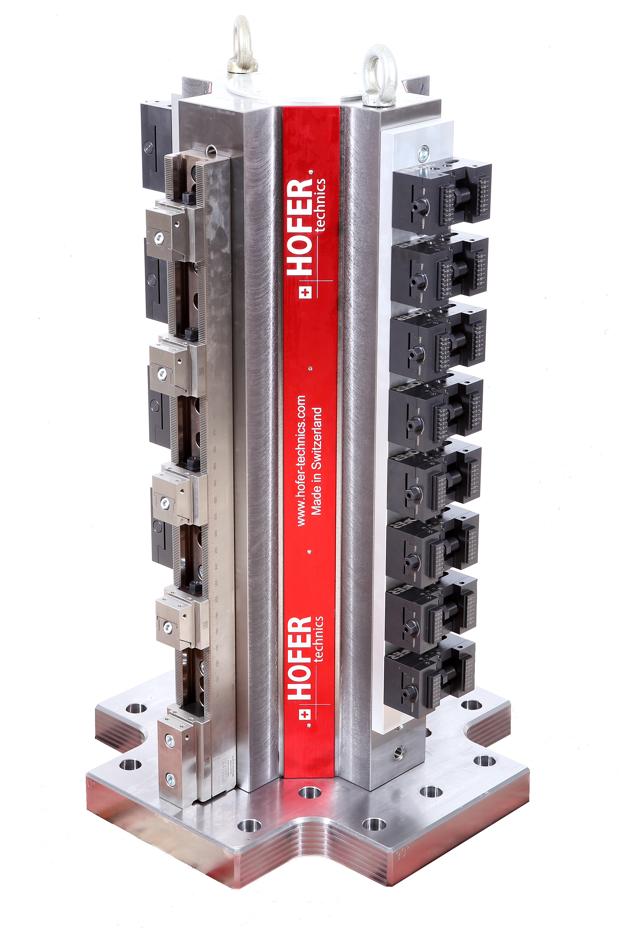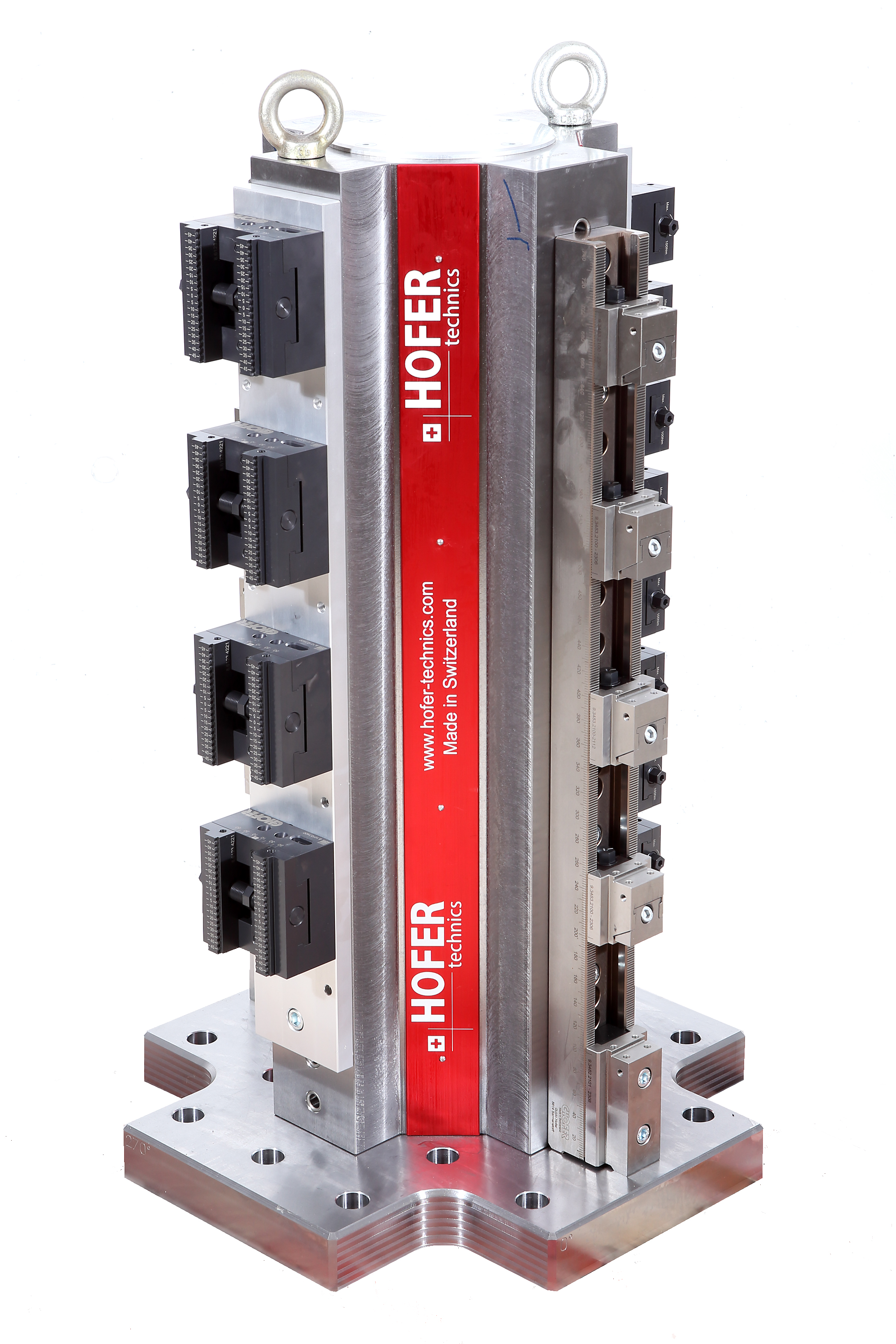 Das Angebot umfasst Spanntürme, Kuben und Doppelwinkel, Aufspannplatten, sowie Pyramiden für die 5-Achsbearbeitung. Die Grundplatten werden dabei kundenspezifisch hergestellt, wobei sämtliche Bauteile im Hause hergestellt werden.